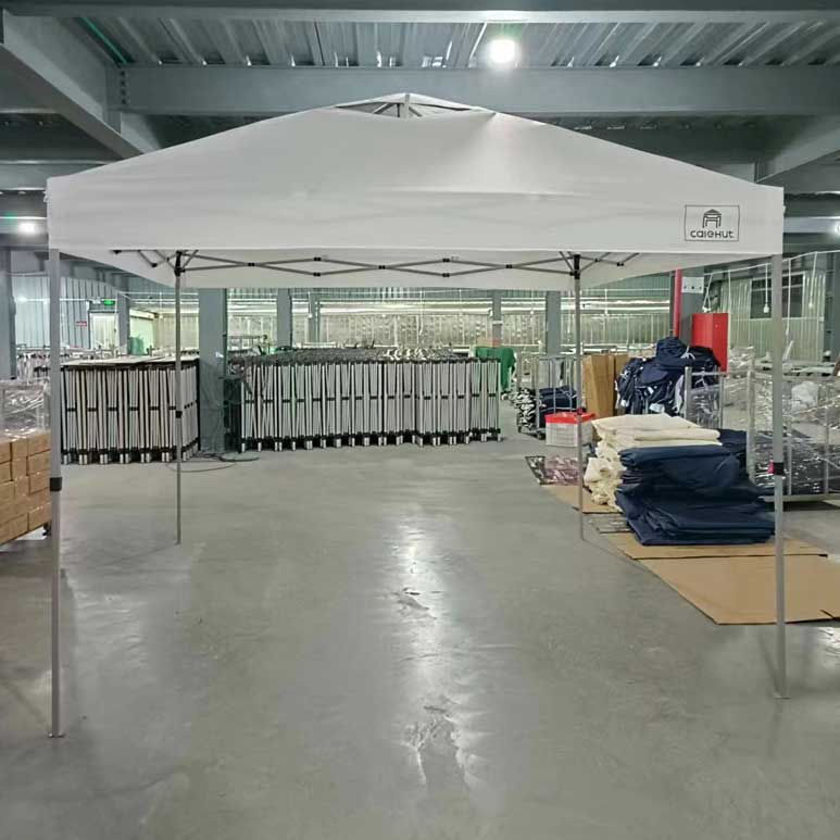 Calehut is a manufacturer specialized in produccing leisure outdoor products like various of Canopy tent, folding gazebo,products for more than 10 years. we have extensive experiences in different kinds of makket: north american, EU market etc...We hace strict quality managment system across the whole processing. over the years, we integrate the design,metal tubes perfectly and try our best to afford the best service to each customer as we can.Our engineers are focused on delivering the very best range of folding shelters with constant levels of innovation and an ever-expanding range of Intellectual Property. We are positioned at the forefront of innovation and ingenuity in this market.we now offer a low “MOQ” as well as competitive air-freight prices for bespoke printed canopies.Our management team has combined experience in the outdoor shelter market.